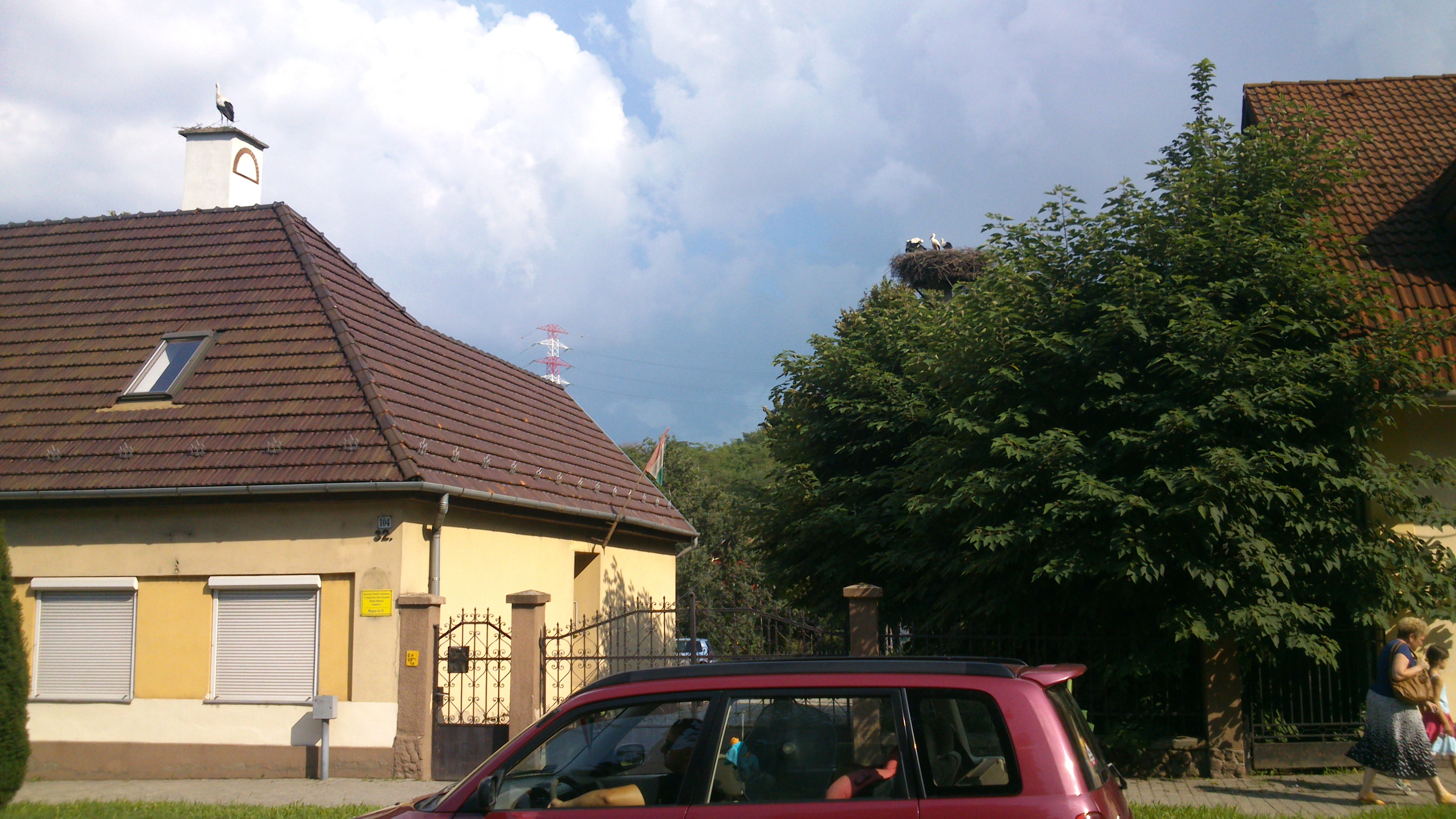 Hát úgy látszik, hogy a gólyáéknál is zajlik a családi élet. A gólyapapa ( feltesszük, hogy ő) elköltözött a családi fészekből, s egy tetővel arrébb rakott magának egy átmeneti otthont. Magányosan ácsorog az albérletben, míg a családi otthonban kelepel a család.