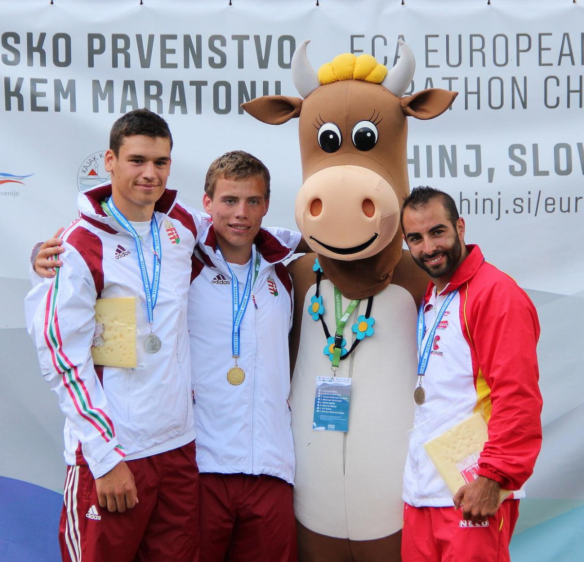 A férfi kajakosoknál kettős magyar siker született. A bakui Európa Játékokról vírusos betegséggel hazatérő Solti László nyert Petró Ádám előtt. A két magyar két körig egy 15 tagú bolyban haladt, a futás után azonban a spanyol Sánchez Cobosszal együtt elléptek. A mieink az utolsó kis kör elején még hagyták érvényesülni spanyol riválisukat, a finisre fordulva azonban mindketten bedarálták őt.