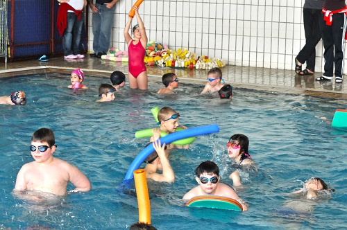 A bemutató úszás keretein belül az oktatásban részesülő gyermekek versenghettek különböző úszásnemekben.