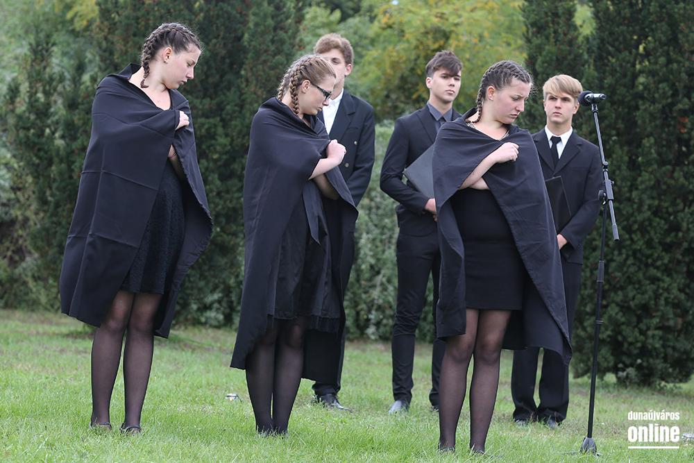 A Bánki Középiskola műsora után Pocsainé Varga Veronika mondott beszédet, majd elhelyezték az emlékezés koszorúit.