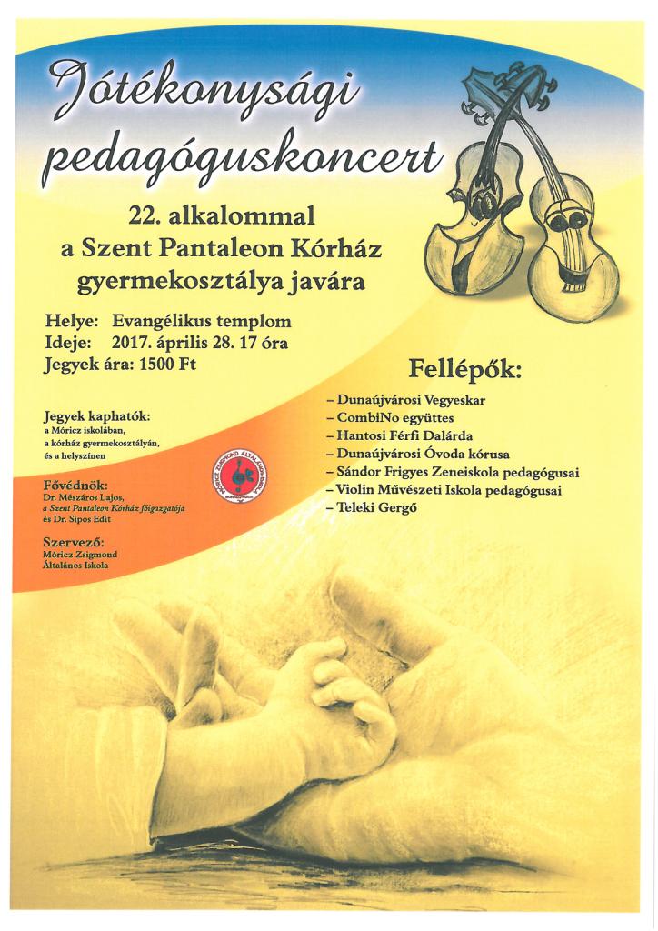 2017-ben 22. alkalommal rendezik meg a jótékonysági pedagóguskoncertet, április 28-án 17 órától az Evangélikus Templomban.
