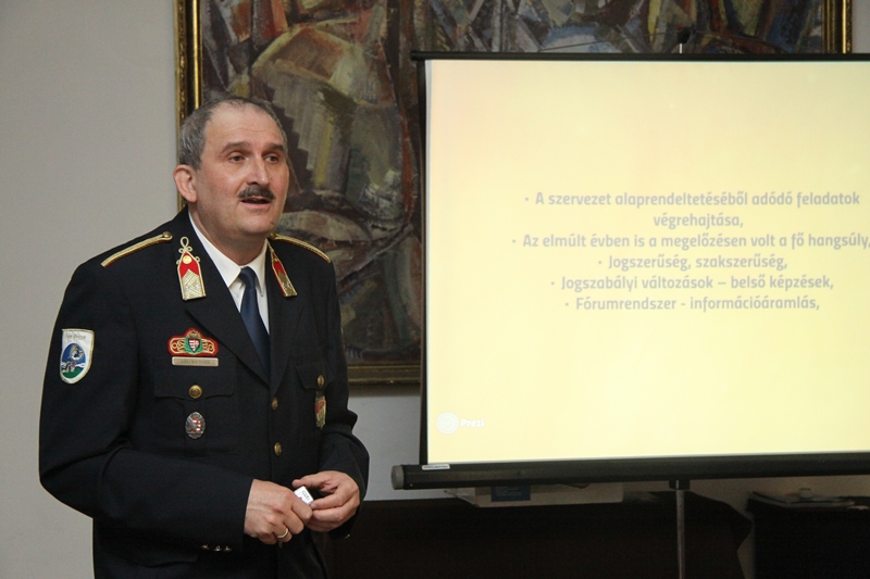 gyakorlatát, valamint a tömegrendezvények biztosítási feladatait emelte ki. Évértékelőjének a végén az alezredes megköszönte a kirendeltség minden munkatársának elmúlt évi tevékenységét, valamint a társszervek, a járási hivatalok, az önkormányzatok és a civil szervezetek jelen lévő vezetőinek a folyamatos együttműködést.