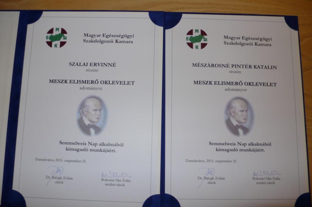 Az ünnepség keretében Semmelweis napi MESZK elismerő oklevelet adtak át, valamint a rendezvény keretében a Magyar Egészségügyi Szakdolgozói Kamara Fejér Megyei Szervezete által alapított „Aranylámpás Díj” átadására is sor került, ezt a díjat minden évben egy fő kaphatja meg.