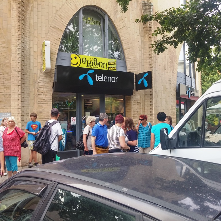 Öt óra fele jártam arra először, akkor még vagy negyvenen vártak a sorukra, volt aki másfél, de olyan is, aki két órája állt türelmesen. De tényleg, én biztos, hogy nem bírtam volna a sorállást olyan türelemmel, amit Mahatma Gandhi is megirigyelhetett volna. Aztán, ahogy térülök fordulok, látom, hogy rendőrautók szállták meg a Telenor boltjának környékét. Szám szerint hét autó érkezett a csatolt állománnyal. Komolyan voltak, akik már terrortámadásra gondoltak a fegyveres erők ilyen mértékű kivonulása láttán, de semmi ilyen nem volt, csak az alkalmazottaknak járt le a Telenornál a munkaideje, s haza szerettek volna az ügyintézés helyett menni, ehhez azonban be kell zárni a boltot, abban meg ügyfelek voltak. Érthető, hogy ki kellett őket toloncolni, reggelig még sem maradhattak volna ott.