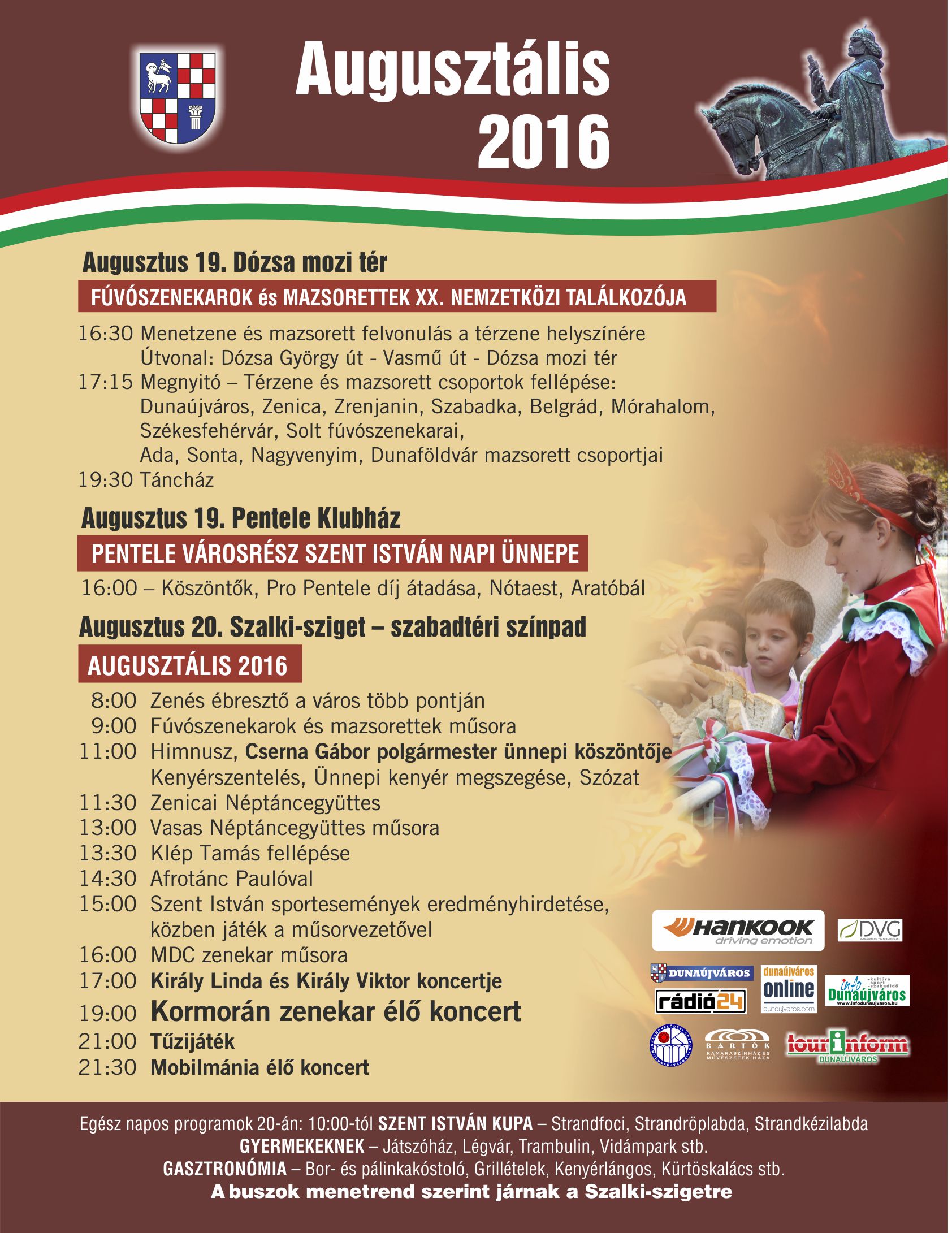 Ismét színes programokkal, zenés, táncos rendezvényekkel várják városunk lakóit az augusztus 20-ai ünnepségre.