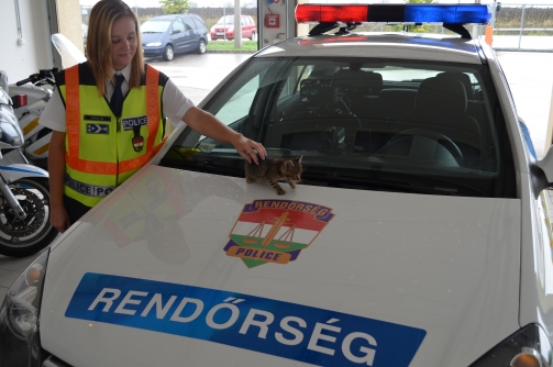 Az iváncsai autópálya-rendőrök tegnap este egy szolgálati autó motorterében megbújva találtak rá a képen látható kölyök macskára. A kis kandúrnak a rendőrök a Sziamiaú nevet adták.