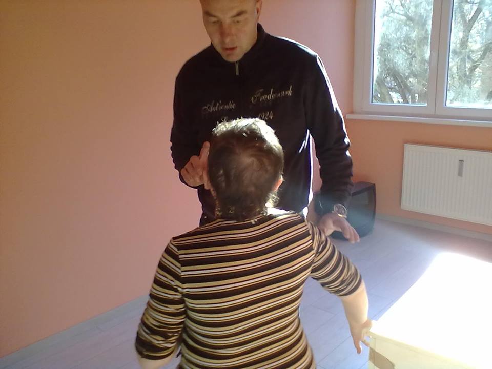 Nevet, s igazolásául mindennek, végighúzza kezét a konyhai díszcsempén. Majd elmeséli, hogy tükröt is szeretne, és majd mindig mielőtt kilép majd a lakásból, körbeforog előtte, hogy minden rendben van-e .Pénteken Orosz Csaba parancsnok irányításával végre beköltözhetett otthonába.