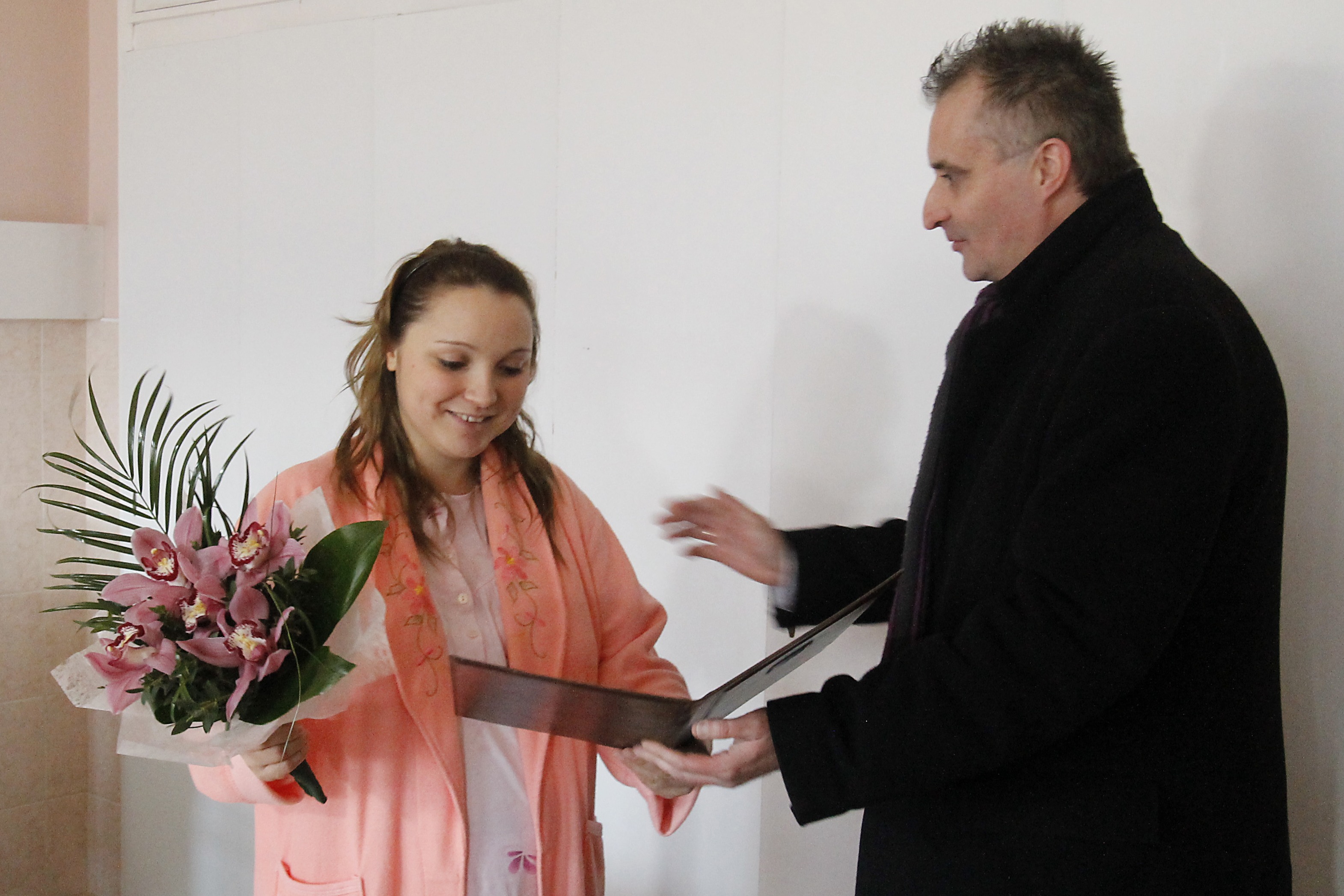 Miután felköszöntötte az anyukát, a jelenlevőkkel a földszinti gyermekosztályra vonultak, hogy megnézzék az újszülöttet. Fekete Dominik 4500 gramm súllyal és 58 centiméterrel jött a világra.