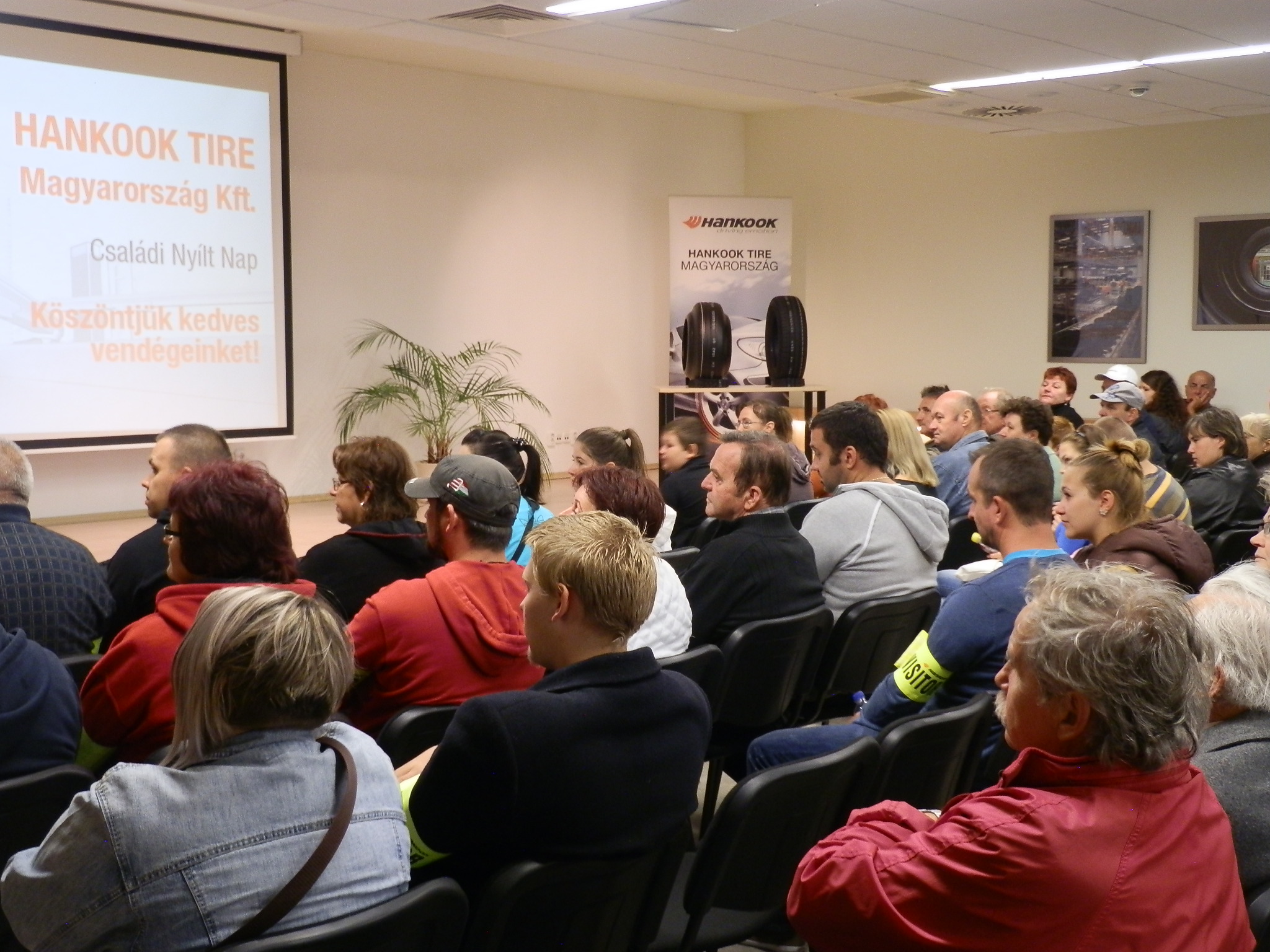 A gyülekező a Hankook Háznál volt, gyors regisztráció és szállólátogatás után, már a közel 150 látogató beléphetett a gyárba. Ahol kávé, sütemény, üdítő várta a vendégeket, majd személyesen Lee Sang Ill, ügyvezető-igazgató köszöntötte a részt vevőket, hangsúlyozva, hogy milyen fontosnak tartják, hogy hozzátartozóik a Hankook dolgozói lettek. Szavait taps fogadta, majd szülők, gyerekek, barátok és barátnők előbb meghallgathatták, majd a gyárlátogatás során meg is nézhették, hogy mivel is foglalkozik a Hankook, illetve , hogyan készül a gumiabroncs.