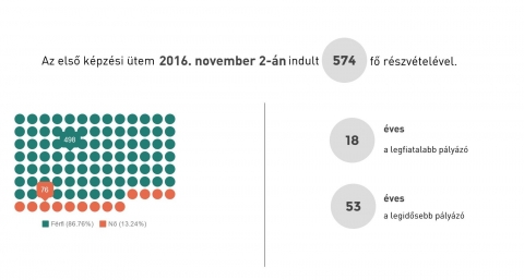 Az első képzési ütem 2016. november 2-án indult 574 fő részvételével. A képzést megkezdők közül 498 férfi, 76 nő. A legfiatalabb pályázó 18, a legidősebb 53 éves.