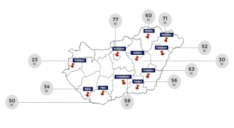 A képzések Budapesten 77 fővel, Debrecenben 52 fővel, Barcson 34 fővel, Kiskunhalason 58 fővel, Körmenden 23 fővel, Miskolcon 60 fővel, Nyírbátorban 71 fővel, Orosházán 63 fővel, Pécsett 50 fővel, Szegeden 56 fővel, Szolnokon 30 fővel indultak. A sikeres pályázatok függvényében még ebben az évben újabb tanulmányi kurzusok indítását tervezzük.