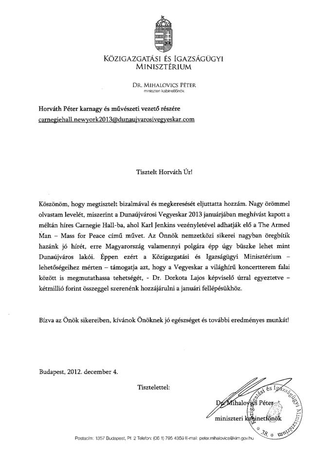 " Egy közel 2 éves folyamat végéhez közeledünk. Nagyon fáradtnak érzem magam, de közben nagyon boldognak is. Mert a nagy és néha reménytelennek tűnő célt lassan elérjük. Még nem ülünk a repülőn ez igaz. De a jegyeket, megrendeltük. S bár nagyon örültem volna, ha mindenki eljöhetne velünk, aki az eredeti projekt részese volt, az is nagyszerű, hogy 72 énekes képviselheti hazánkat és azon belül városunkat a világ egyik leghíresebb színpadán január 20-án.