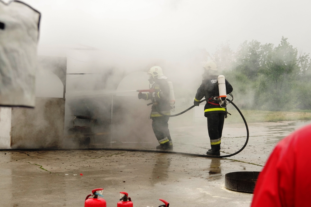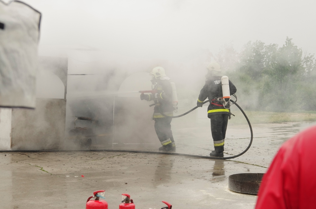Majd bemutatták a különböző tűzoltási módokat, és megmutatták, hogy tűz esetén melyek a helyes viselkedési módok.