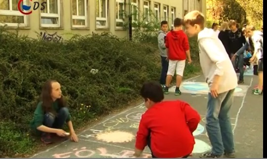 Hagyományosan aszfaltrajz-versennyel ünnepelte a Föld napját a Vasvári iskola.