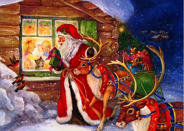 Az európai népeknél kezdetben a Mikulást (Santa Claus, Pere Noel, Christmas Father...) hosszú ősz szakállú, csuklyás, földig érő köpönyeget viselő aggastyánként ábrázolták. Angliában a XVII. sz. óta jelenítik meg, máig legnépszerűbbek a viktoriánus kor mikulásai. Szent Miklós ünnepe Amerikában a XIX. században keveredett össze karácsony ünnepével, ekkor vált Christmas Fatherré( Karácsony Apó ). A Mikulás hagyományosan rénszarvas szánon közlekedik, a finnek szerint egyenesen Lappföldről indul a világ minden tájára. Az amerikai gyerekek nem csak a Mikulást kedvelik nagyon, de kedves szánhúzó rénszarvasát is. Egy amerikai gyermekdal szerint Rudolphot, a rénszarvast testvérei kicsúfolták piros orra miatt, a Mikulás azonban őt választotta maga mellé. Azóta együtt járják a világot, hogy a gyerekeknek ajándékot vigyenek.