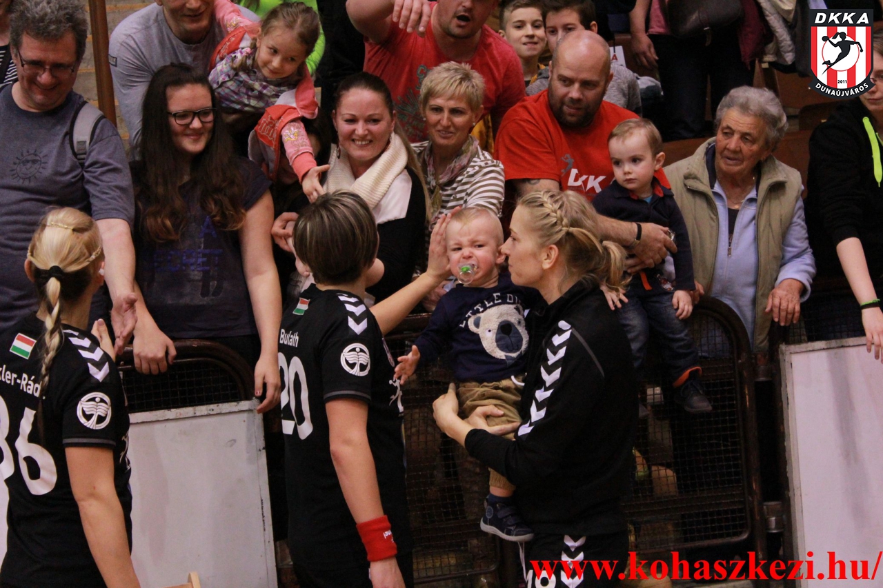 A térfélcserét követően alaposan felforgatta együttesét Mátéfi Eszter vezetőedző, lehetőséget kapott a fiatal Klujber Katrin is, aki azonnal góllal tette le névjegyét a felnőtt csapatnál. Ezzel együtt igen sok hiba csúszott mindkét együttes játékába, így az első tíz percben nem nőtt a két gárda közti különbség (26-16). Idővel azért fáradtak az igen rövid cserepaddal rendelkező vendégek, míg a mieink játéka szerencsére pontosabbá vált, így az utolsó negyed óra már örömjátékot hozott, melyből szebbnél is szebb találatokkal vették ki részüket játékosaink, akik végül kiütéses, 39-20-as győzelemmel biztosították be harmadik helyüket az alapszakasz végén.