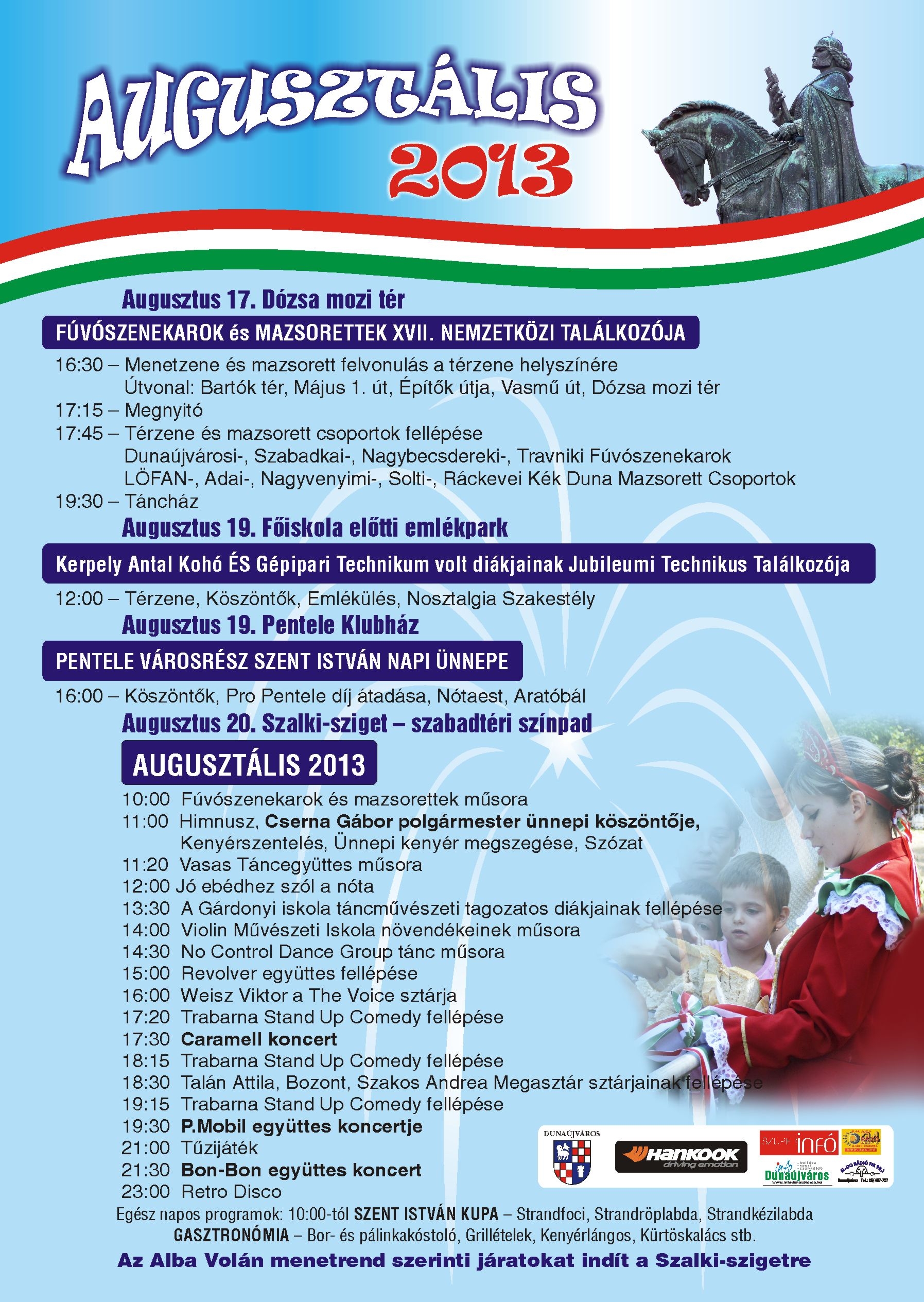 Dunaújváros Megyei Jogú Város Önkormányzata szeretettel várja városunk lakóit, és a szórakozni vágyó érdeklődőket, családokat az idei AUGUSZTÁLIS rendezvényre!