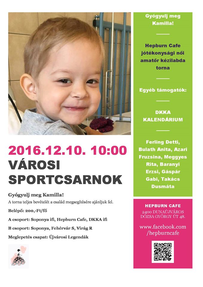 Németh Magdolnának, a Hepburn Cafe tulajdonosának életében mindennapi szerepet kap a kézilabda, hiszen három gyermeke mellett ő is ebben a sportágban jeleskedik, így kézenfekvő volt, hogy a kézilabda segítségével gyűjtenek Kamillának.