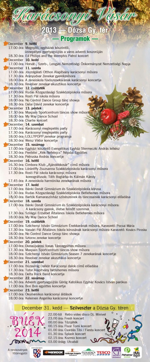 Idén is megrendezik, a hagyományos Karácsonyi Vásárt a Dózsa Mozi előtti téren. Az ünnepi forgatag, december 9-től december 23-ig tart.