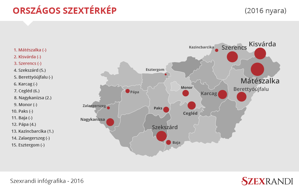 Tavaly év végén a kazincbarcikaiak keresték a legtöbb online pornót, idén nyáron Mátészalka végzett az első helyen. Barcikán nagyon visszaeshetett a pornófogyasztás, idén ugyanis csak a tizenharmadik helyre voltak jók. Mátészalka után Kisvárda és Szerencs fértek még fel a dobogóra, azaz ezekből a városokból keresik a legtöbb szexuális tartalmat az interneten. Budapest idén sincs a toplistán, a tavalyi második Nagykanizsa és a hatodik Cegléd viszont idén is bekerült a top 15-ös listára, csakúgy, mint Kazincbarcika mellett Szekszárd és Pápa. Íme a 2016 nyári pornóvárosok listája (zárójelben a tavalyi helyezésekkel):