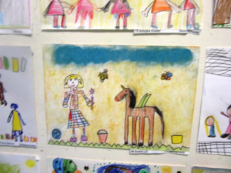 A több mint másfélszáz alkotás közül 33 kisgyermek munkája látható az Arany iskola előcsarnokában. Ahogy ezt Lukács János, az iskola pedagógusa, a verseny szervezője elmondta, mindegyik rajz egy-egy történet, amely bármikor folytatható, s továbbépülhetnek.