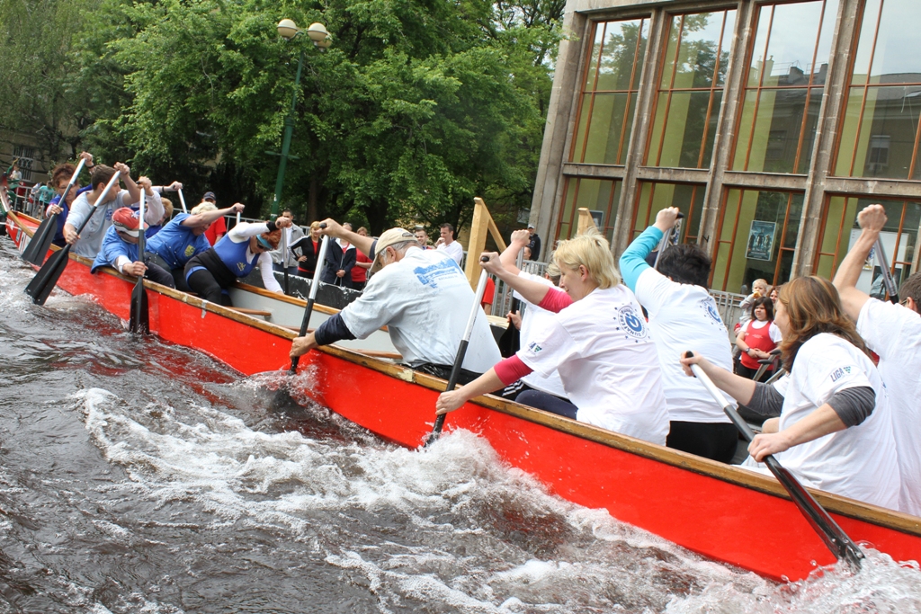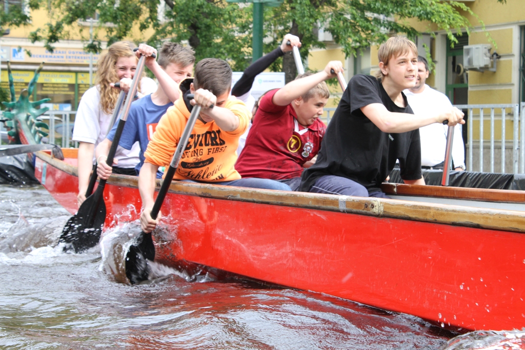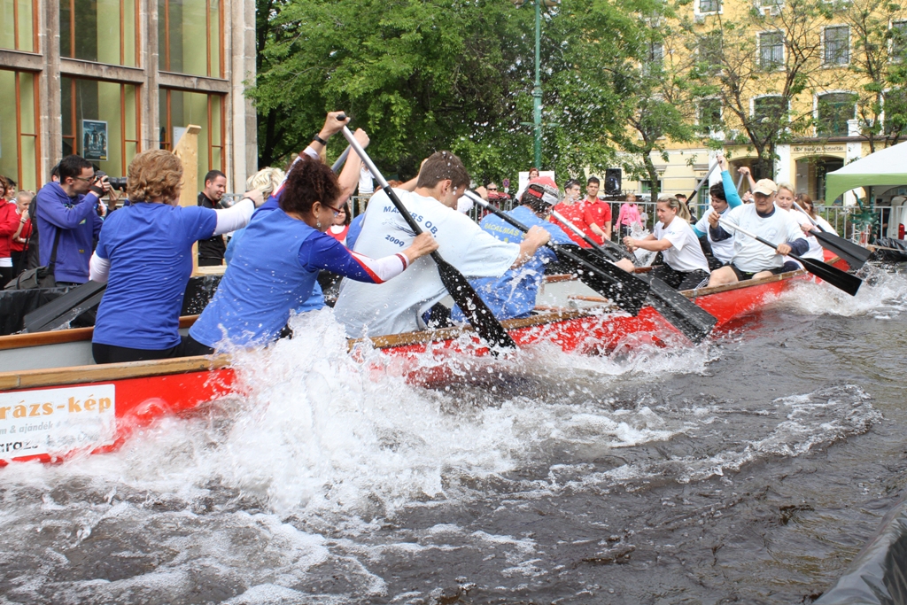 Hogyan lehet szárazföldön sárkányhajó-versenyt rendezni? Bevallom, fogalmam sem volt arról, hogy ez hogyan lehetséges. De hát a valóság, és az ötletesség felülmúlta a képzeletet. Úgy kell elképzelni az egész versenyt, mint egy kötélhúzást. Csak egy hajóban ülve nem együtt, hanem egymással szemben evezett a két hat -hat fős csapat.