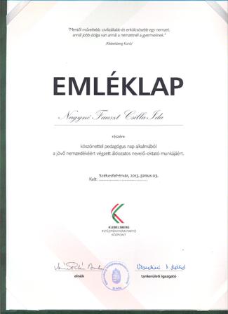2013. június 3-án a Pedagógus nap alkalmából a Székesfehérvári Tankerületközponti ünnepségén Nagyné Fauszt Csilla Idát, a Rudas Közgazdasági Szakközépiskola, Szakiskola és Kollégiumáltalános igazgatóhelyettesét lelkiismeretes és eredményes vezetői, tanügyigazgatási tevékenységéért, valamint a tanulók nevelésében nyújtott példamutató munkájáért szakmai elismerésben részesítették a Klebelsberg Kunó Intézményfenntartó Központ országos és megyei vezetői.