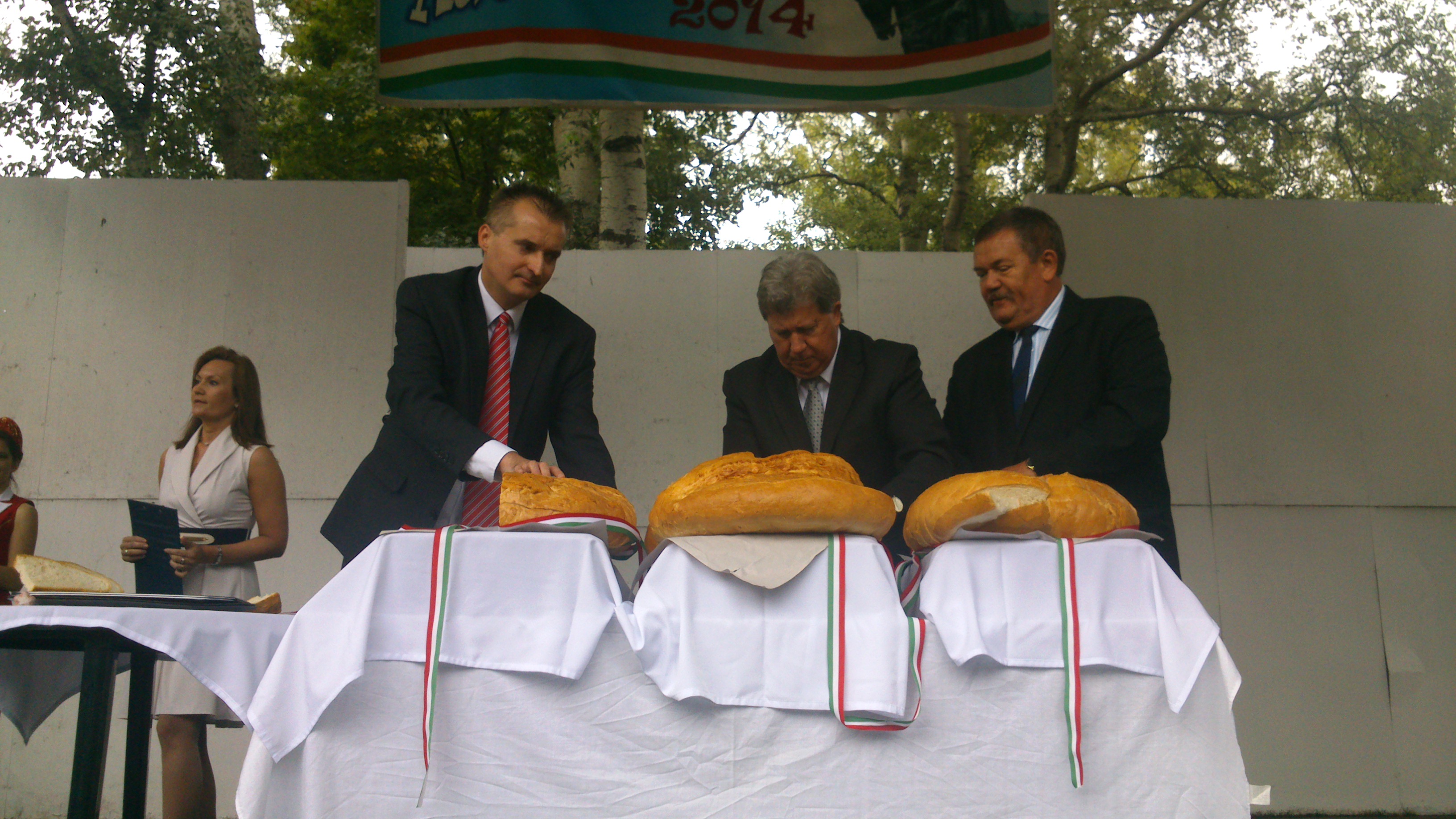 Szívhez szóló, elgondolgodtató gondolatok után szentelték meg, majd szelték fel a kenyereket, amelyekből igyekeztek nagyon sokan egy-egy szeletet megszerezni. Most stanglikat is osztogattak, így ezúttal nem maradt senki új kenyér nélkül, aki hozzá szeretett volna jutni. Persze, ez nem volt annyira reménytelen vállalkozás, hiszen az eső miatt nem tolongott nagy tömeg,