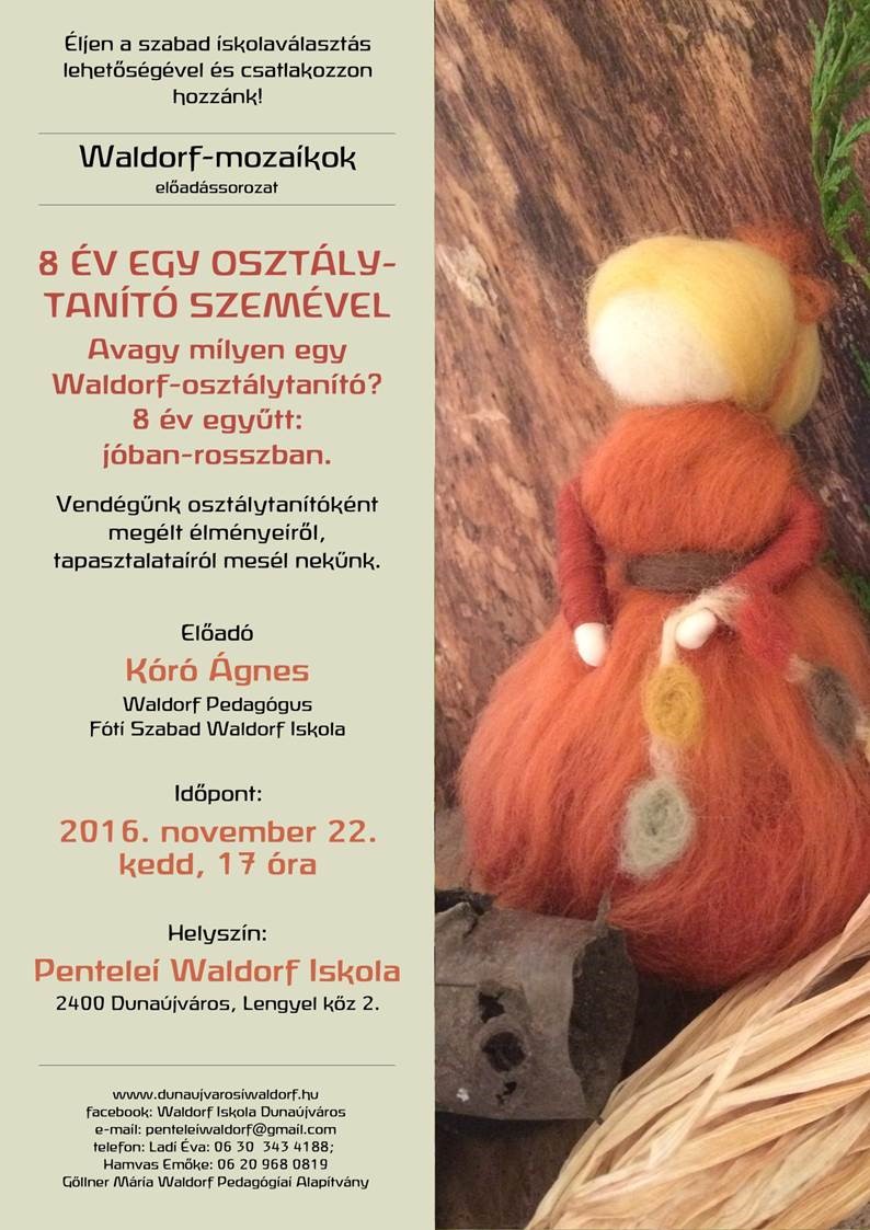A Waldorf-mozaikok előadássorozat első találkozóján azt tudhatjuk meg milyen egy jó Waldorf-tanító. Az előadás november 22-én, kedden, 17 órakor kezdődik a Pentelei Waldorf Iskolában. (Lengyel köz 2.)