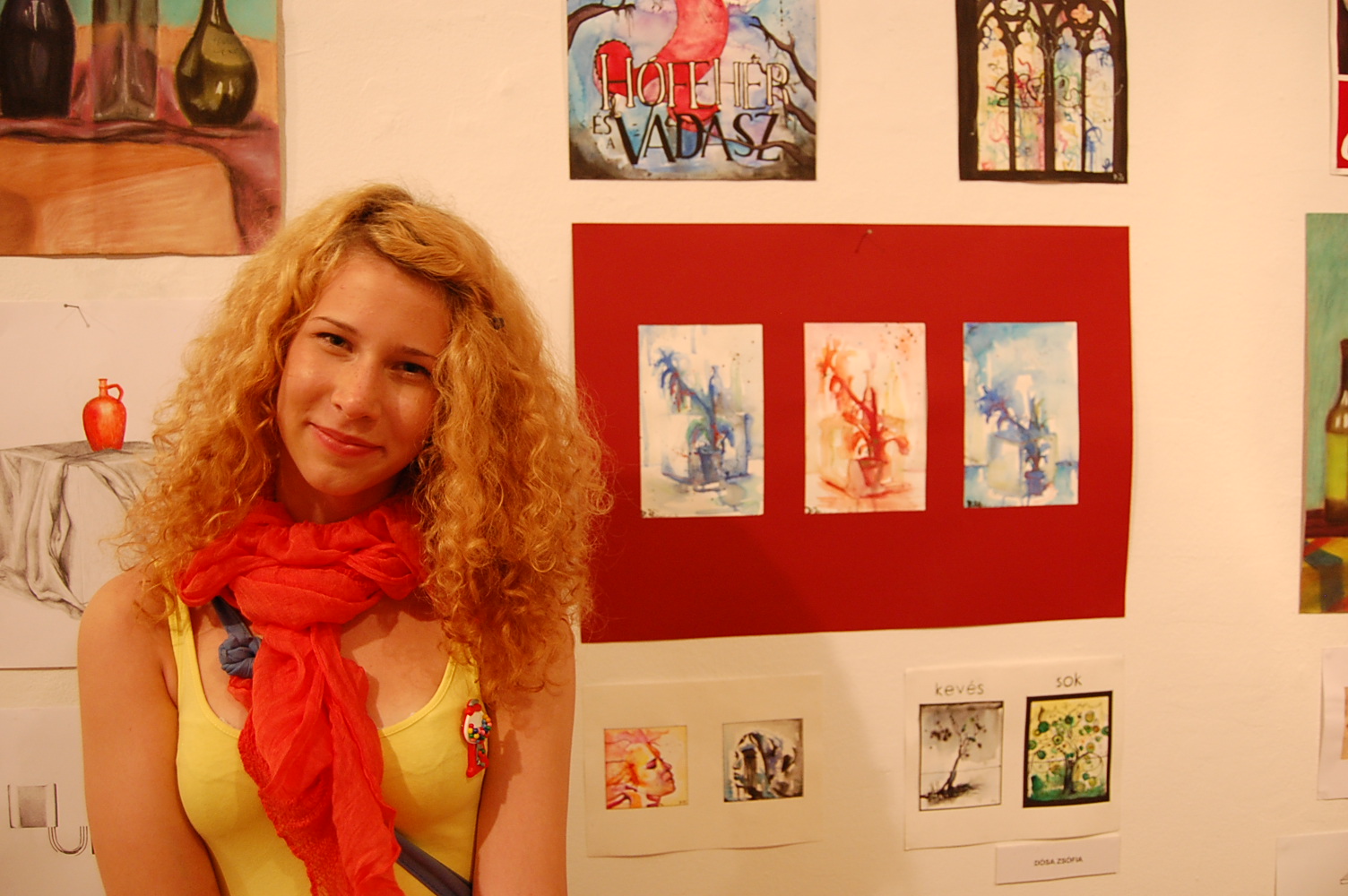 Zsófi: 6 éves korom óta rajztanárom Horváth Zsuzsa tanárnő, akinek sok mindent köszönhetek, a pályázat felhívásokat, az alkotótáborokat a múzeumlátogatásokat, amik mind segítettek a fejlődésben.