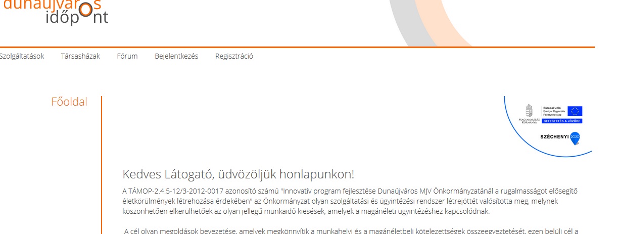 - A város hivatalos honlapján, a www.dunaujvaros.hu honlap baloldalán található a Dunaújváros Időpont rovat, amire kattintva máris átvezet bennünket az edtr.dunaujvaros.hu honlapra. Ahol egy gyors regisztráció után máris használhatjuk a portált.