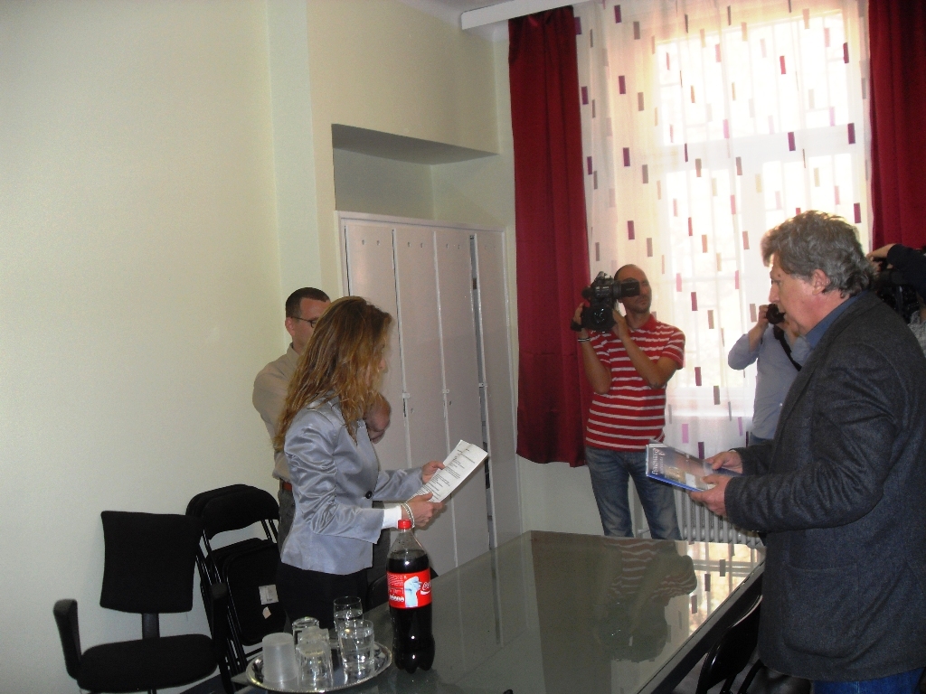 A hajléktalan szálló előtt azonban meglepő módon a választási szövetség képviselőit Gombos István ( Fidesz) alpolgármester fogadta.