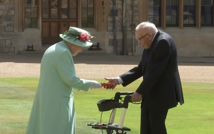 A "Captain Tom", vagyis Tom százados néven világszerte ismertté vált veterán - aki a második világháború idején az ázsiai hadszíntéren szolgált és századosi rendfokozatban szerelt le - azt vállalta, hogy századik születésnapja előtt százszor körbesétálja házának jókora kertjét. Ennek fejében azt kérte, hogy aki teheti, adományokkal támogassa az NHS által a koronavírus-járvány megfékezésére kifejtett áldozatos erőfeszítést.
