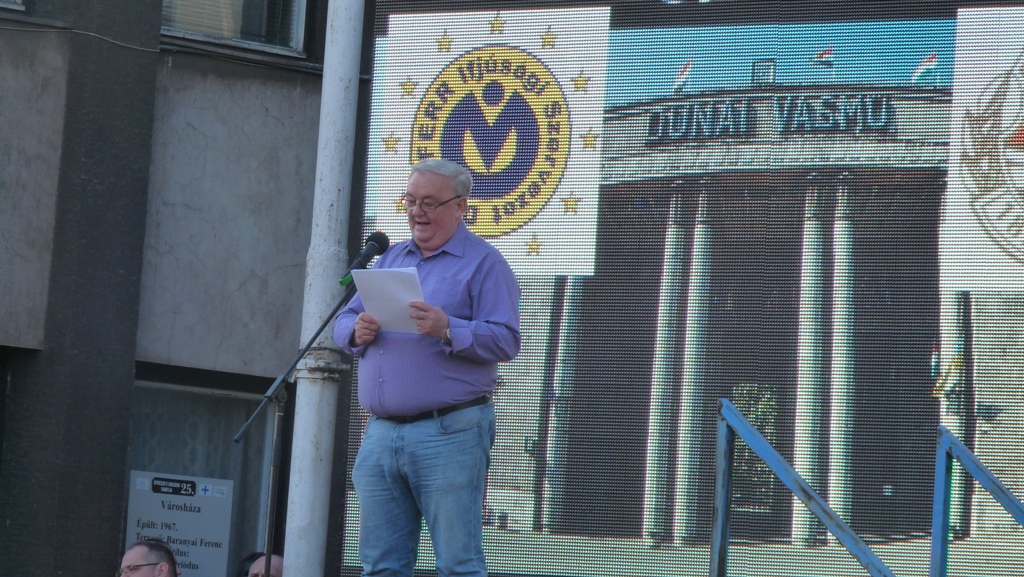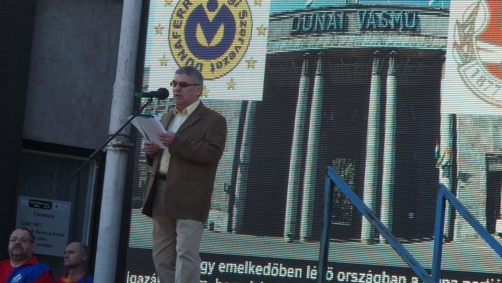 Az első hozzászóló Móri Imre, "fiatal nyugdíjas", egykori vasműs dolgozó volt, aki aggodalmát fejezte ki a helyzettel kapcsolatban. Elmondta, hogy a bérek csökkentése és az elbocsátások nem hoznak áttörő megoldást; emberek, családok ezrei kerülnek kiláthatatlan helyzetbe. Összefogásra és kitartásra buzdította szaktársait-„dolgozók, lakók, vigyázzatok a gyárra!”