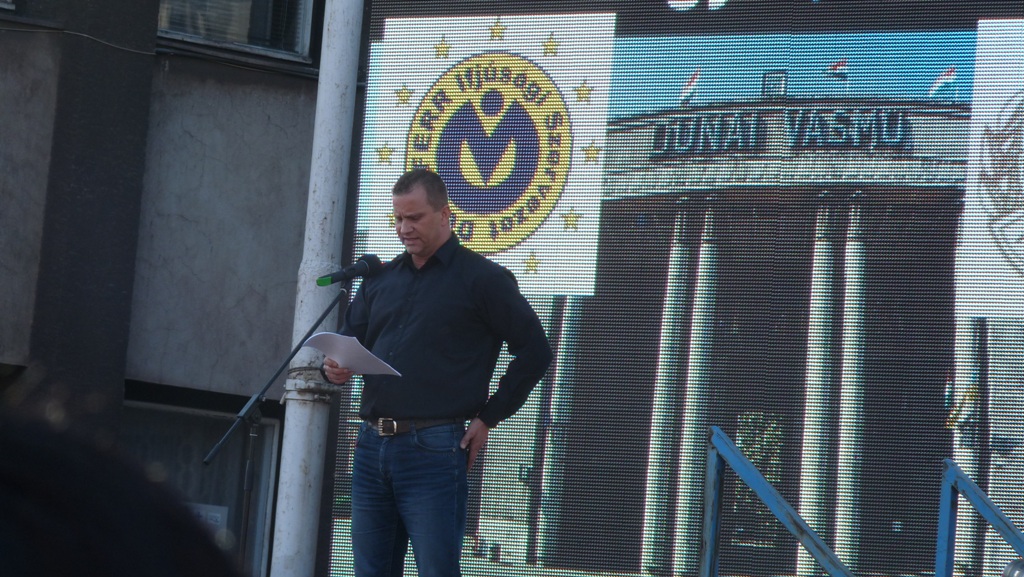 Borbély Zoltán részletes tényadatokat közölt az emberekkel. 86 napja nincs döntés, hangoztatta Borbély, aki elmondta, ha április 31-ig nem születik valamiféle pozitív határozat, 2013-ban nem lehet majd elkezdeni a kohóépítést. Állítása szerint az orosz vezetők, csak pénzt szivattyúztak ki, amivel elszámolni nem tudnak. Ígérgettek az évek során, ami csak katasztrófához vezetetett. A helyzetet nem csak lokális méretűnek nevezte, kihathat akár egész Magyarország gazdasági és szociális helyzetére. Külföldi példákat sorakoztatott fel és a parlament teljes tudatlanságáról is beszélt. Hozzászólását az egység, összefogás, szolidalítás szavaival zárta le.