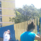 - Kék lett a kerítésrész. Miért? - fordulok Zsanihoz.