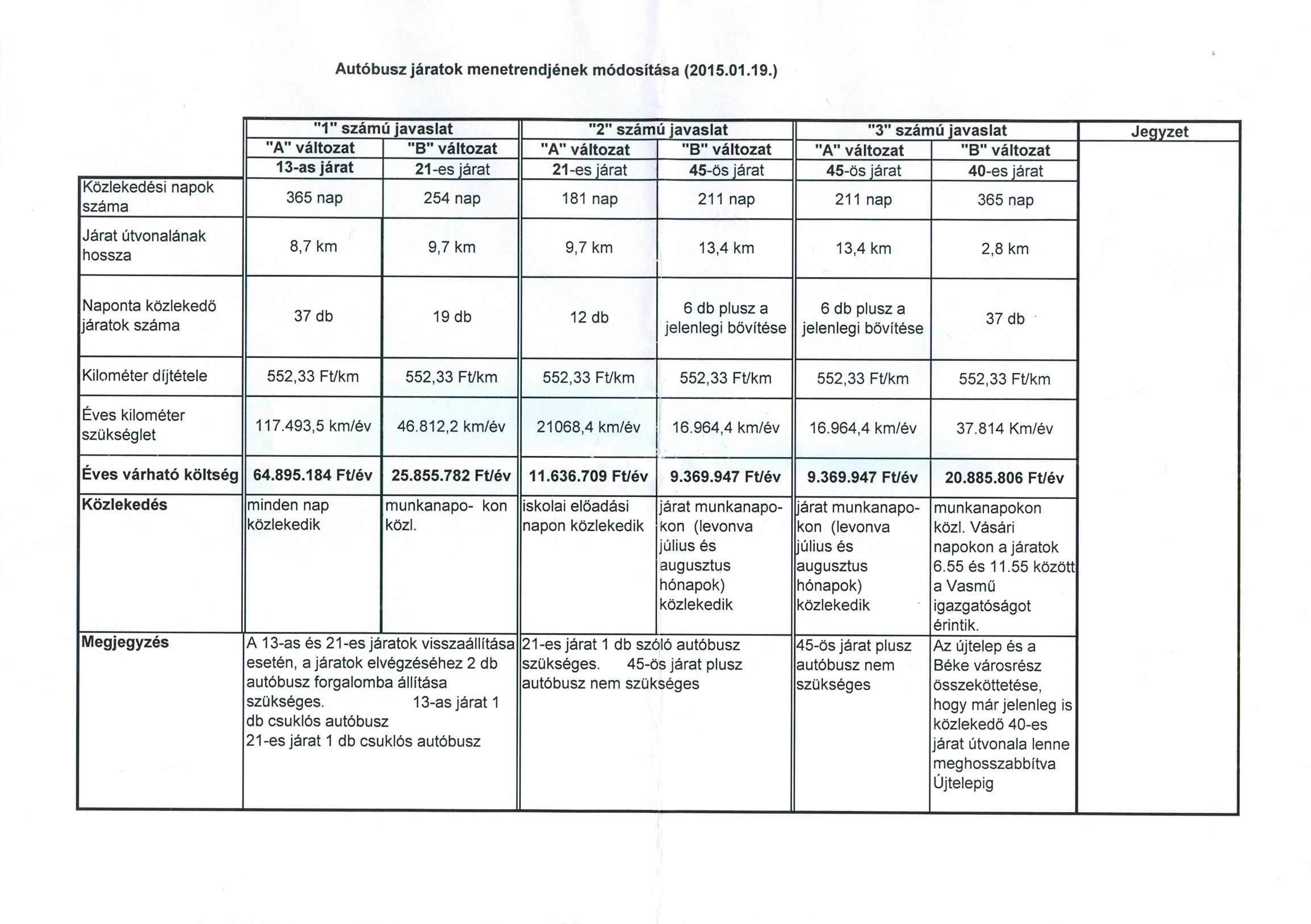 Az első javaslat „A” pontja: A 13-as busz közlekedjen az év minden napján.