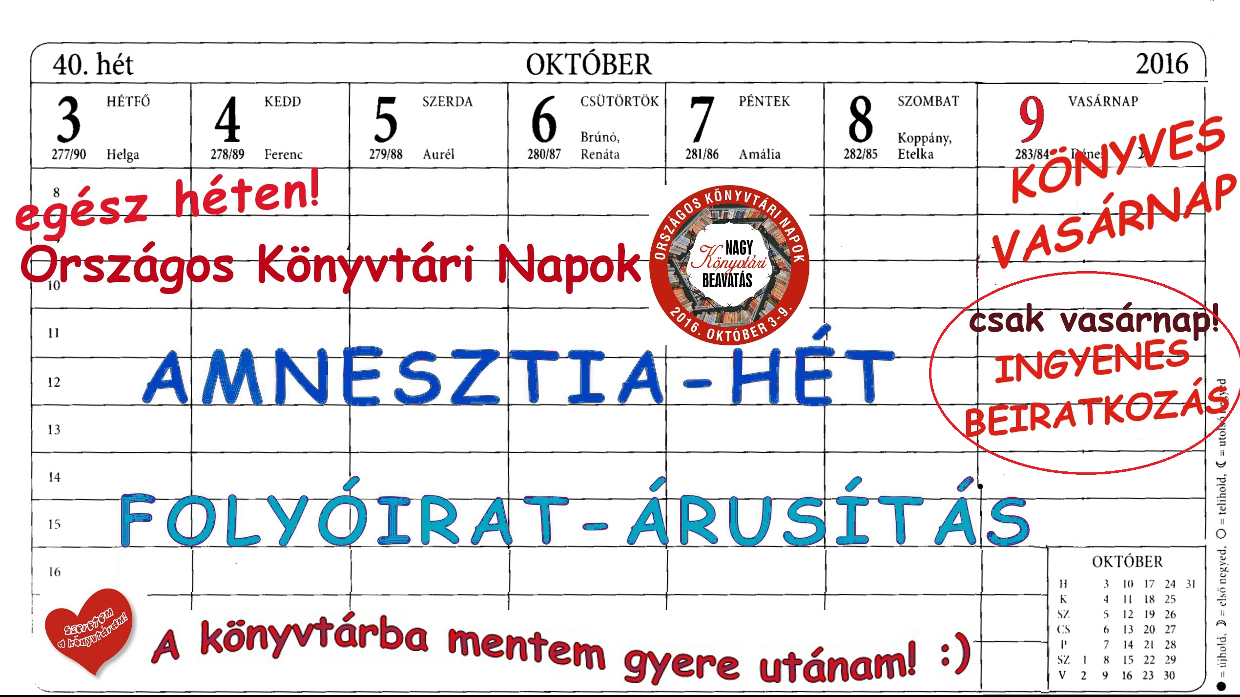 Amnesztia héttel, folyóirat árusítással indul az Országos Könyvtári Napok. Egészen október 3.-9.-ig lehet újságokat vásárolni.