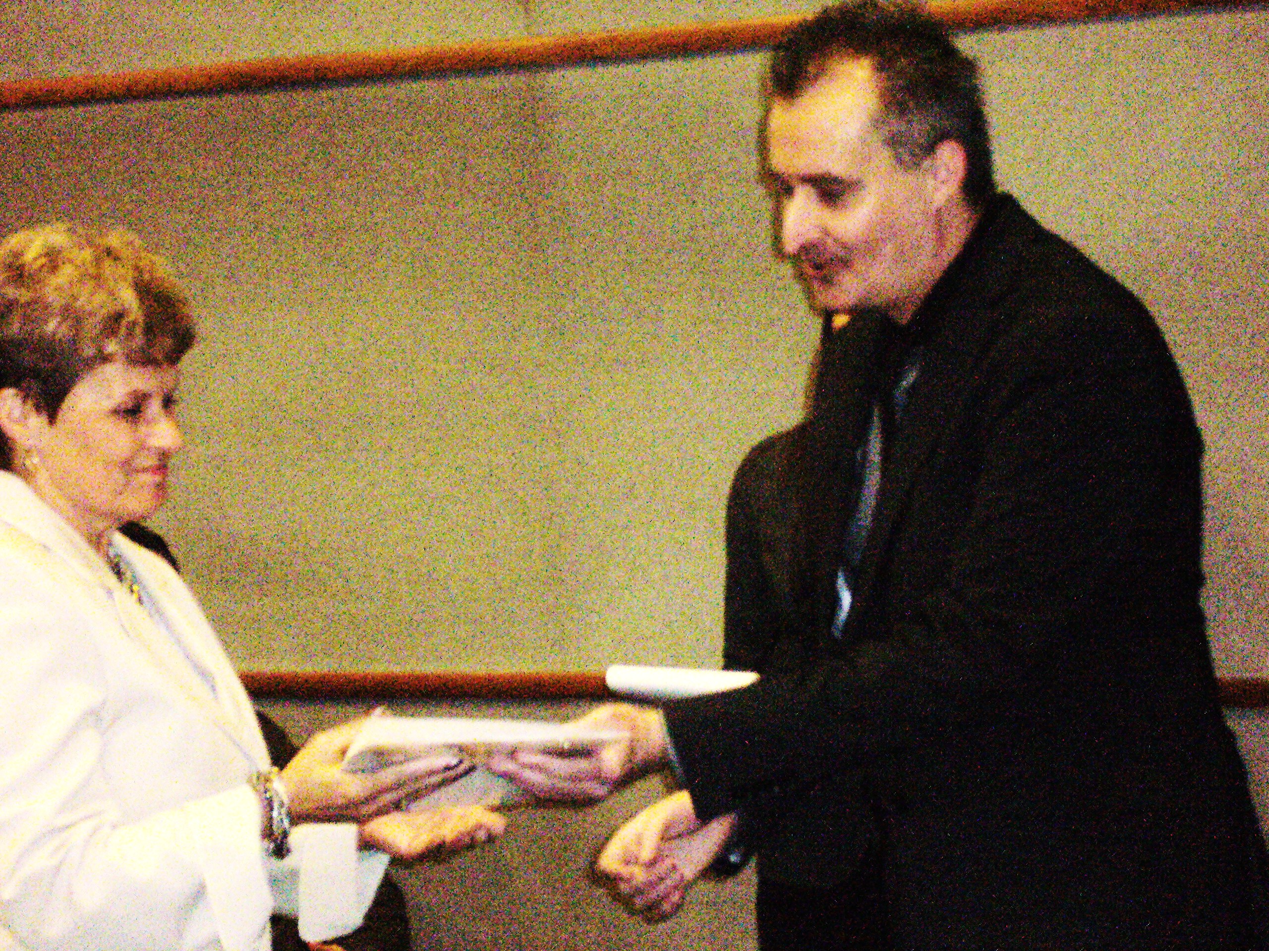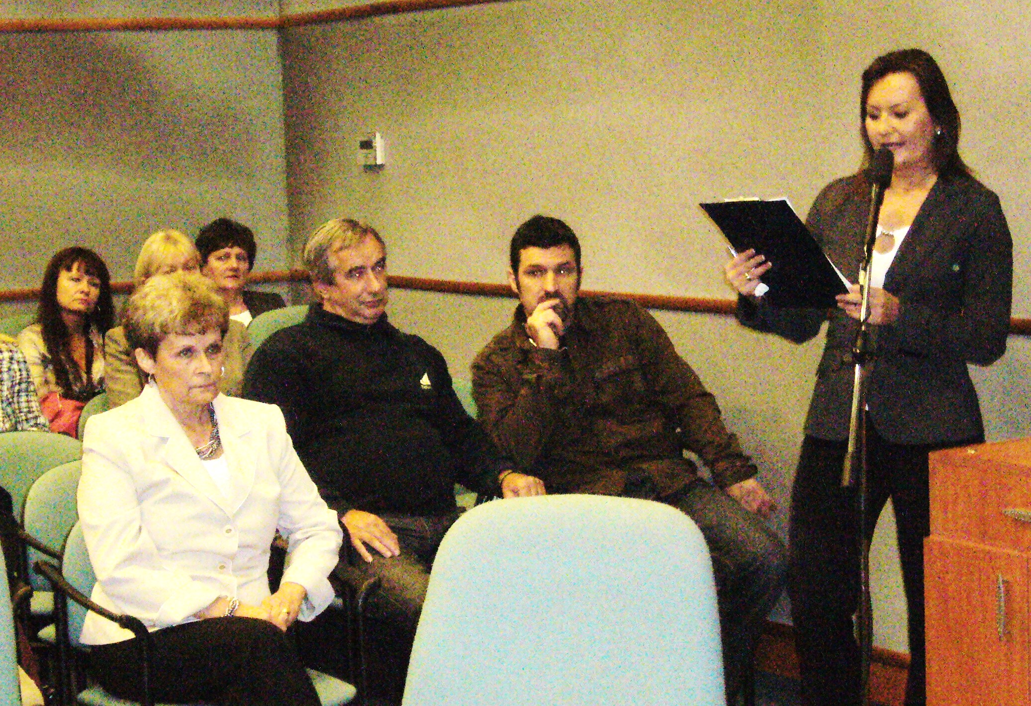 Kedves ünnepséggel kezdődött a csengetés nélküli közgyűlés (a városháza „C” szárnyának átalakítása, az aula felének elrekesztése miatt az ülés kezdetét, a szünetek végét nem jelezte csengőszó). Az októberi közgyűlés ugyanis a „Szociális Munkáért – Dunaújváros” díjat Szulik Lászlónénak adományozta.