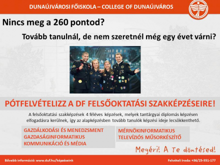 Nőtt a gépészmérnök és a mérnök informatikus képzésekre felvett hallgatók száma a Dunaújvárosi Főiskolán. Akinek nem volt elég pontszáma a bekerüléshez, az pótfelvételin jelentkezhet a meghirdetett üres helyekre 2014. augusztus 12.-ig.