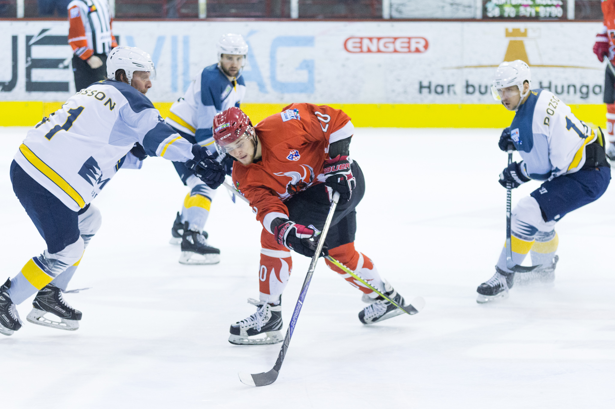 DAB: Duschek - Erdélyi, Mestyán, Becze 1 (1), Léránt, Azari (3), Hüffner (1), Orbán 1 (1), Odnoga 1 (1), Izacky (2), Novotny 1, Lencsés, Hruby, Nageler, Turcotte 1, Hári, Skripets, Silló 1, Németh, Nagy M. Vezetőedző: Jason Morgan.
