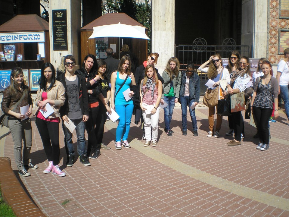 A Zachor Alapítvány két önkéntese, Kinga és Eszter kísért minket végig a délelőtti sétán, ahol Budapest három nagy zsinagógáját néztük meg, közben pedig vázolták a zsidó valláson belüli irányzatokat, a mindennapi életet és a szertartásokat. Délután a Magyar Zsidó Levéltárban vettünk részt egy levéltári vezetésen, böngésztünk anyakönyveket és bevezettettünk a családfakutatás rejtelmeibe, majd egy interaktív kiállítás megtekintésével zárult a program. Minden pályázó diákunk könyvjutalomban részesült és emléklapot kapott.