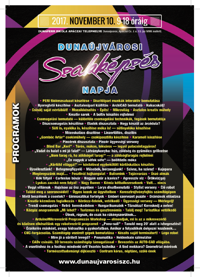 A Dunaújvárosi Szakképzési Centrum 7 tagintézménye külön-külön és együtt is számos meglepetéssel készülnek annak érdekében, hogy megmutassák, milyen érdekesek és különleges is lehet a náluk tanulható szakmák.