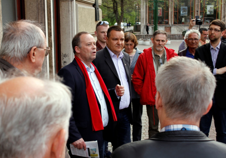 Nem volt nagygyűlés, csak beszélgetés a szimpatizánsokkal, és standolás Szanyi Tibor dunaújvárosi látogatásakor.