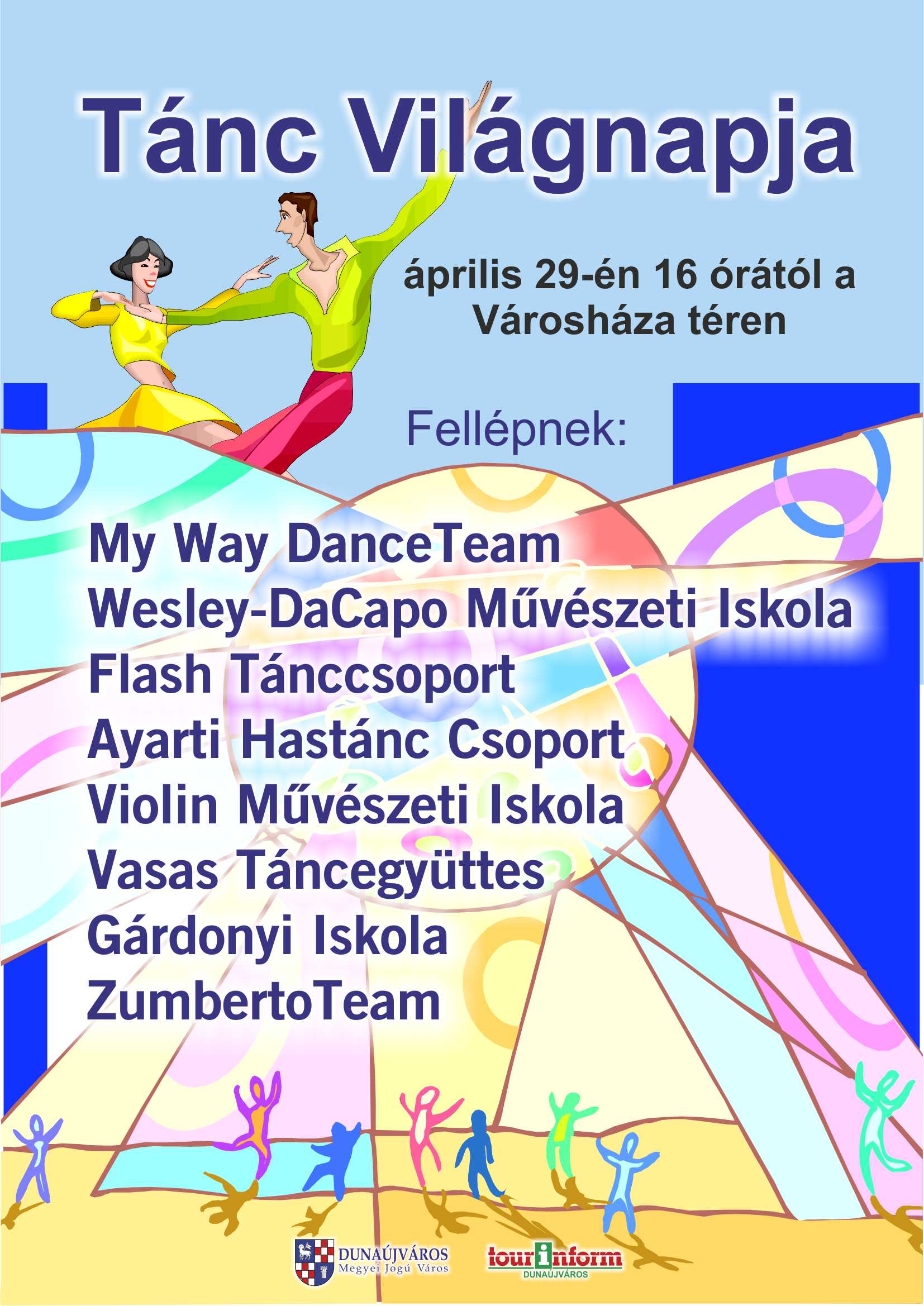 2015. április 29-én szerdán délután 16 órától megéled a Városháza tér! Színes programok és előadók várják a Tánc Világnapja alkalmából szervezett rendezvényen a kilátogatókat.