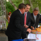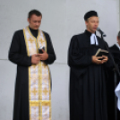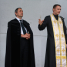 Korán még jó időt ígért, Cserna Gábor ünnepi beszéde és a kenyérszentelés alatt azonban már ömlött, zuhogott az eső.