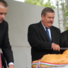 Szívhez szóló, elgondolgodtató gondolatok után szentelték meg, majd szelték fel a kenyereket, amelyekből igyekeztek nagyon sokan egy-egy szeletet megszerezni. Most stanglikat is osztogattak, így ezúttal nem maradt senki új kenyér nélkül, aki hozzá szeretett volna jutni. Persze, ez nem volt annyira reménytelen vállalkozás, hiszen az eső miatt nem tolongott nagy tömeg,