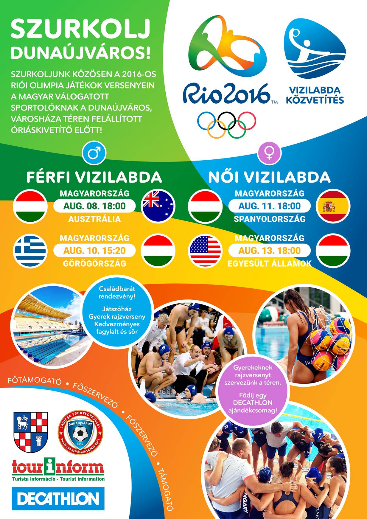Elkezdődik a 2016-os riói olimpia, így lehetőségünk van országunk sportolóit buzdítani, szurkolni nekik. A női illetve férfi vízilabda válogatott mérkőzéseit tekinthetik meg a sportot kedvelők egy családbarát rendezvényen a Városháza előtti téren. A gyerekek számára szerveznek rajzversenyt, játszóházat, de kedvezményes áron kaphatnak fagyit, illetve a felnőttek sört.