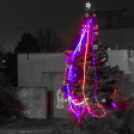 A Dózsa szobor szomszédságában álló karácsonyfát nyolc világító fényfüzér ékesíti, ragyogja be a környéket már 2009 óta.