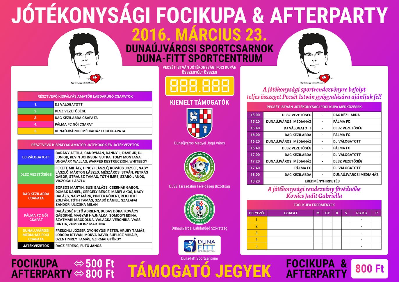 - Két hónappal ezelőtt kerestem meg a Dunaújvárosi Labdarúgó Szövetséget azzal a céllal, hogy segítő kezet nyújtson Pecsét István részére. Ők azonnal a kérés mellé álltak, egyben egy kész programot vázoltak fel, így jött létre a jótékonysági labdarúgó torna. Jó érzés volt végignéznem az öt csapat játékát, ahol a segítő szándékú labdarúgók láthatóan jól érezték magukat. Számunkra is voltak felejthetetlen pillanatok, amikor egyes megmozdulásokat vagy megtapsoltuk, vagy megmosolyogtuk. A legfontosabb, hogy a rendezvény elérte a célját, hiszen a délután során az összegyűlt 454.500 forint, valamint az esti rendezvény bevételének összegével, így 659.500 forinttal hozzá tudtunk járulni Pecsét István gyógyulásához. Ez egyben azt jelenti, hogy a dunaújvárosiak összefogása sikerült, hiszen meg van az az összeg, amely a Kínában történő gyógykezeléshez szükséges.